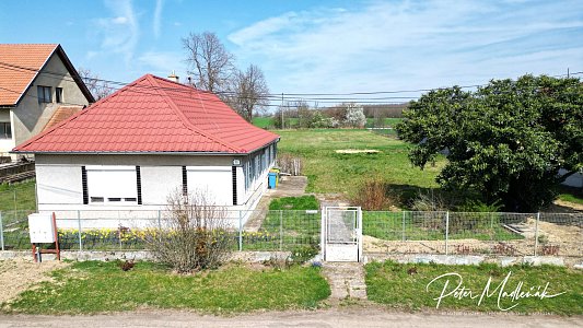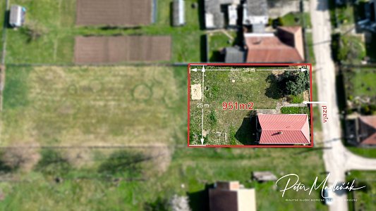 Rozmer pozemku je cca 38x25 m – /951m2/ a je napojený na inžinierske siete voda, elektrina, plyn.