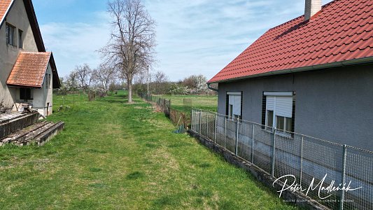 Možnosť dokúpiť za domom v 2x samostatný stavebný pozemok cca 28x25 m – /697m2/ inžinierske siete voda, elektrina, vjazd zboku a zo zadu, cena za jeden 77.000 €